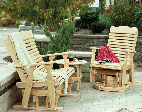 Treated Pine 3 Pc. Curveback Glider Set Shown (ANGLE 2) With Customer Provided Décor.