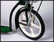 Close up of front wheel of Comet Scooter shown in Dark Green