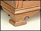 Close up of base of Glendale Oak Chest Shown in Provincial Oak Stain - OCS 112