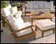 Teak Port Set Loveseat, Shown with Off-White Cushions w/ Off-White Piping and Optional Pillows
