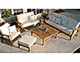 Teak Port Sofa & Square Coffee Table Shown with Off-White Cushions w/ Off-White Piping and Optional Pillows
