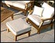 Teak Port Chair & Ottoman, Shown with Off-White Cushions w/ Off-White Piping and Optional Pillows