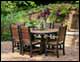 64"L x 44"W Garden Classic Sunflower Poly Lumber Oval Table Shown in Chocolate Brown on Black with Optional Garden Mission Dining Chairs