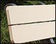 Close up of seat of Poly Lumber Portable Park Bench shown in Weatherwood on Black