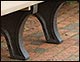 Close up of base of Poly Lumber Portable Park Bench shown in Weatherwood on Black