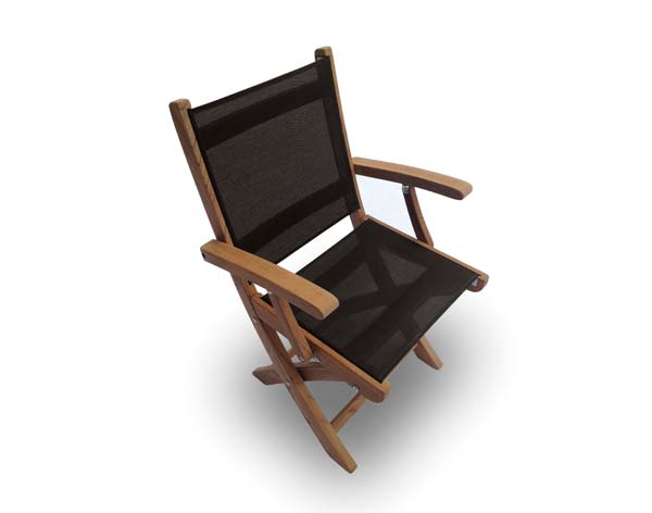 Sailmate Teak Arm Chairs Shown in Navy with Optional Table