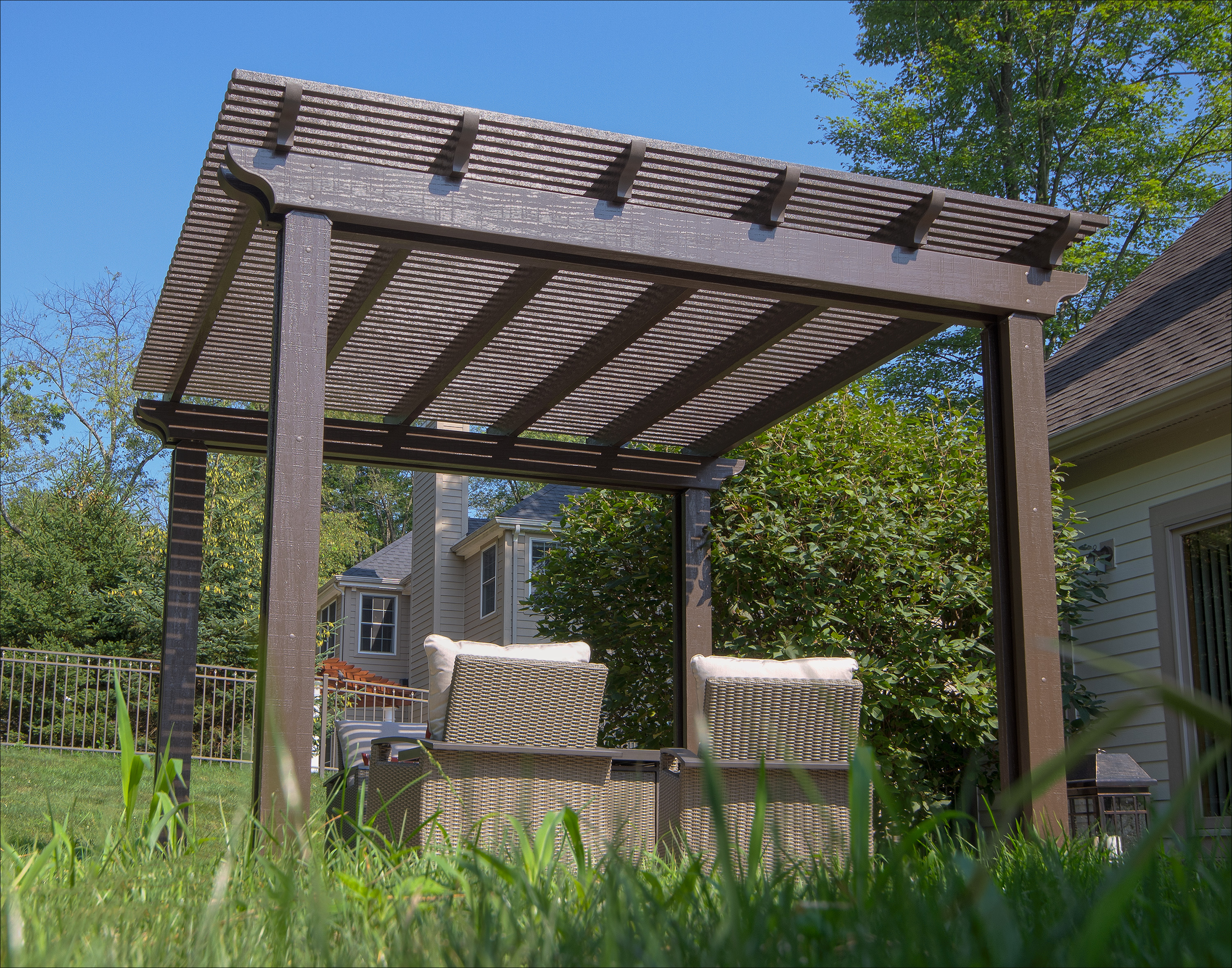 Our 12' x 12' Aluminum Vintage Classic Pergola has the power to create a modern look while also offering a warm and intimate feeling. This spacious pergola not only provides ample room to host family and friends but also adds structure to the simple patio. Shown in Aged Bronze paint this structure seamlessly compliments the home and patio furniture. Click on "Customize this Product" to go to the award-winning Design Wizard and create your own today or click on "Request Shipping Quote" to get an idea of what it would cost to have this Pergola shipped to you.
