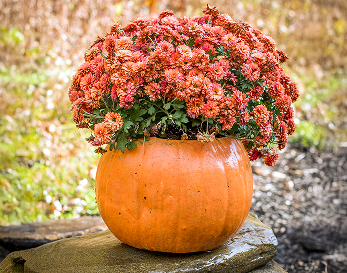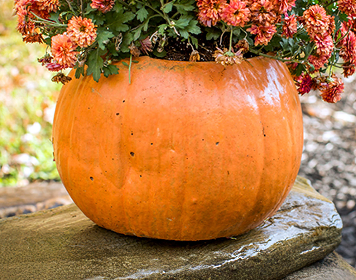 Concrete Hearthstone Pumpkin Planter shown in Pumpkin Orange