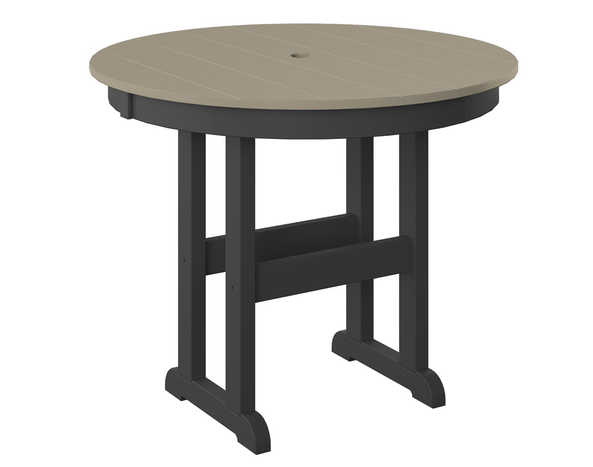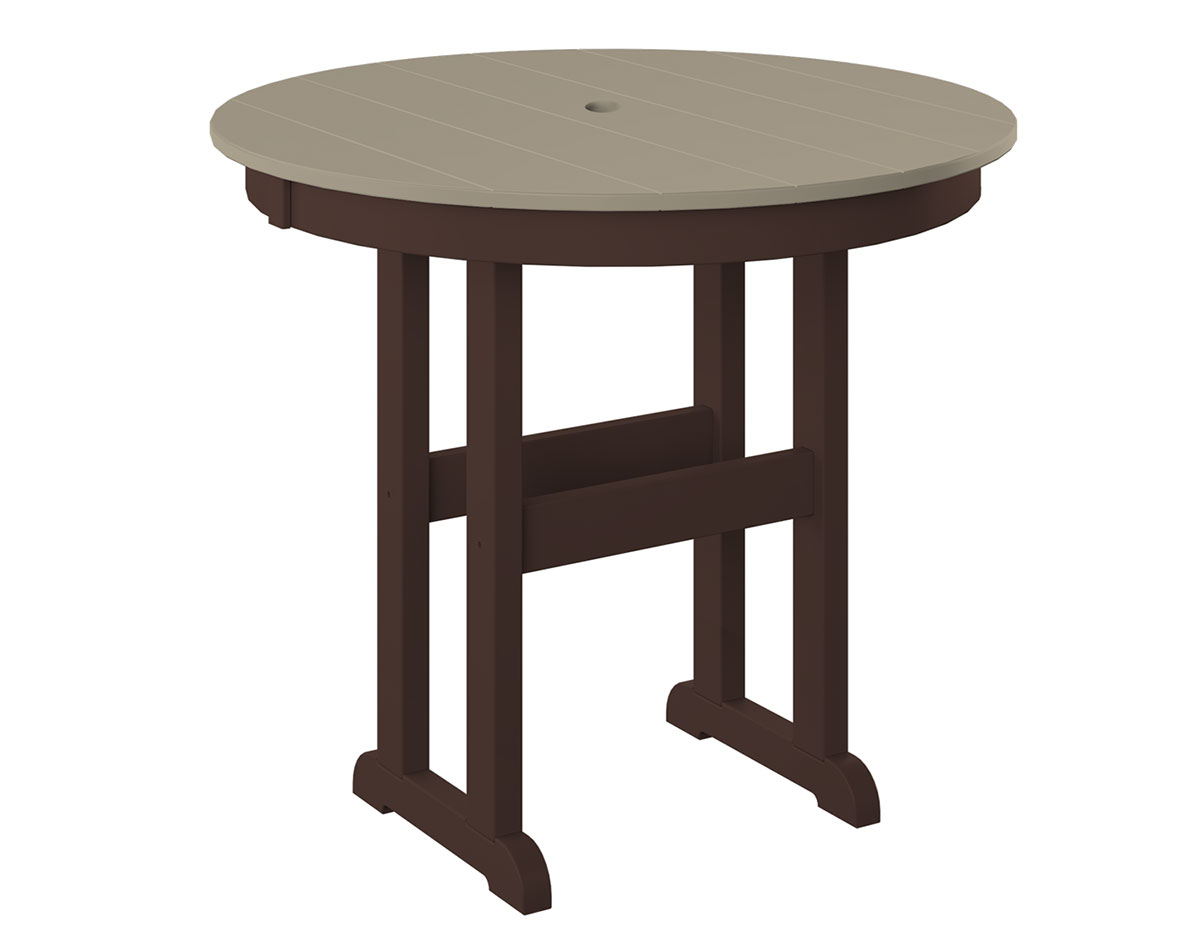 Poly Lumber Bayside 38" Round Table shown at Counter Height in Weatherwood / Tudor Brown