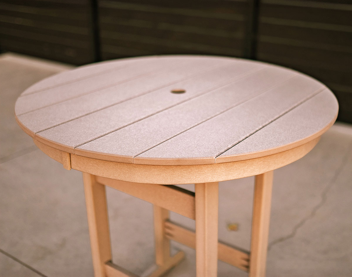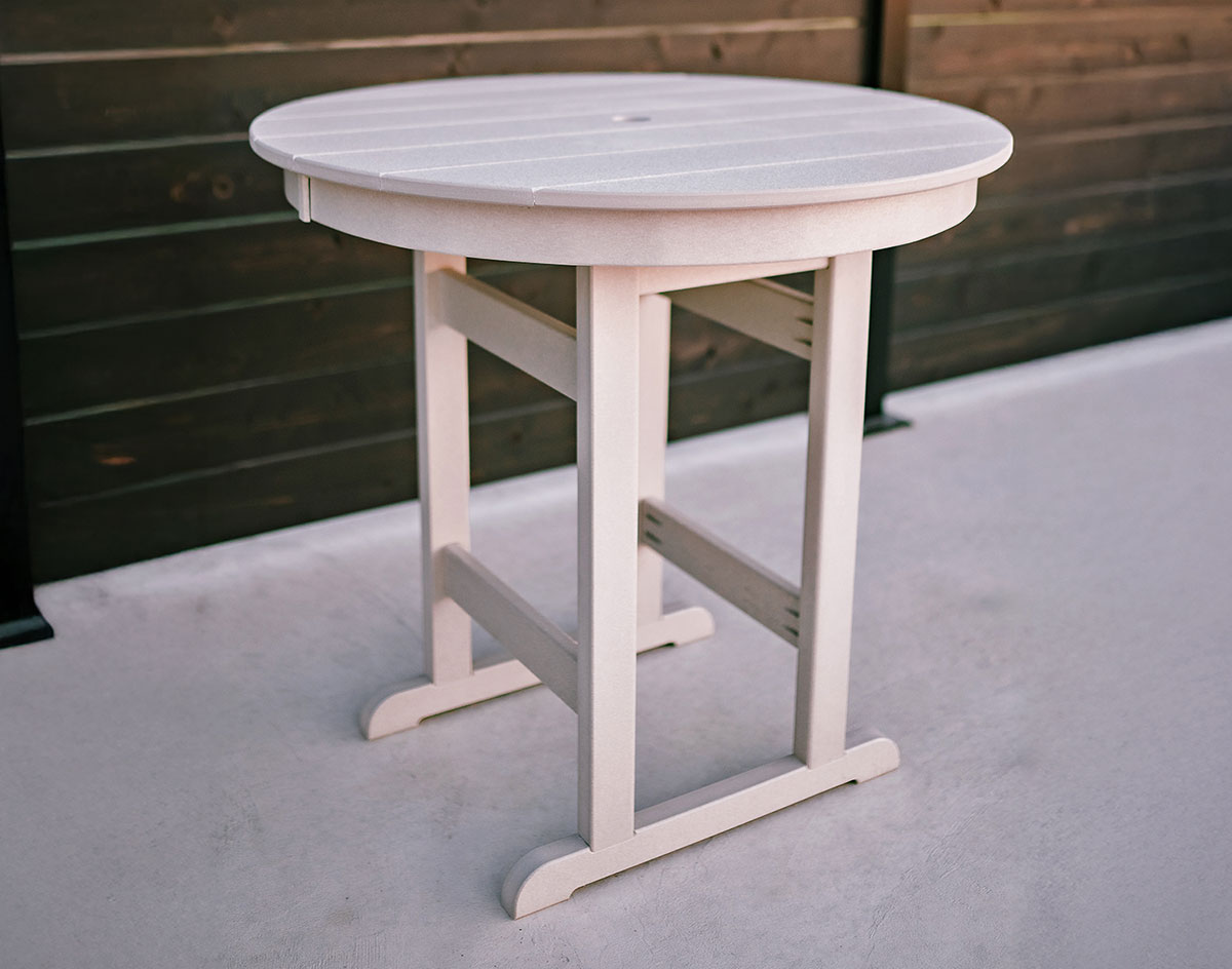 Poly Lumber Bayside 33" Round Table shown at Counter Height in Sand / Weatherwood