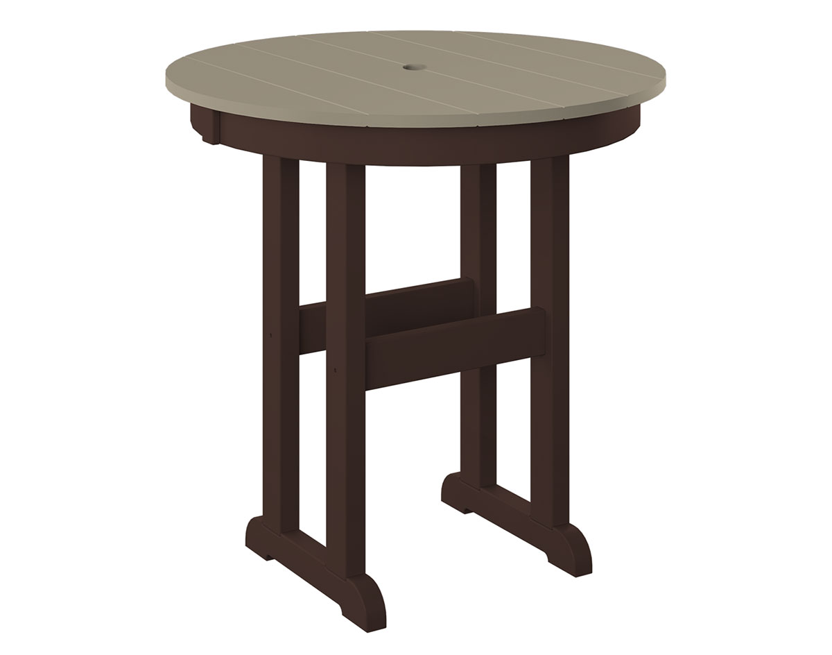 Poly Lumber Bayside 33" Round Table shown at Counter Height in Weatherwood / Tudor Brown