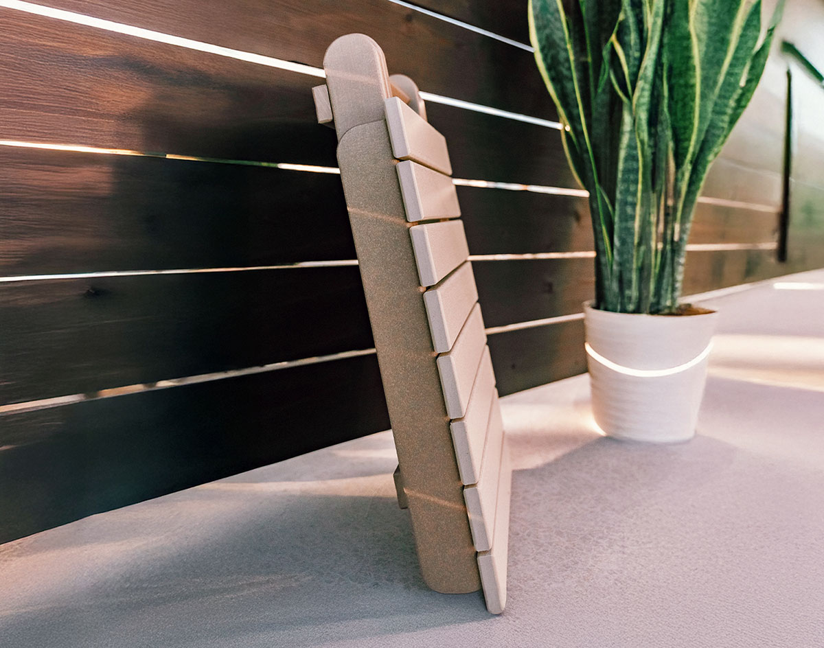 Poly Lumber Bayside Folding End Table shown folded up in Sand / Weatherwood