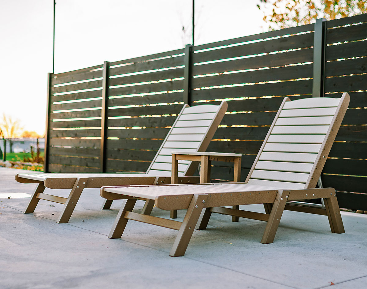 Poly Lumber Bayside Chaise Lounges shown in Sand / Weatherwood with Poly Lumber Bayside Oval End Table (sold separately)