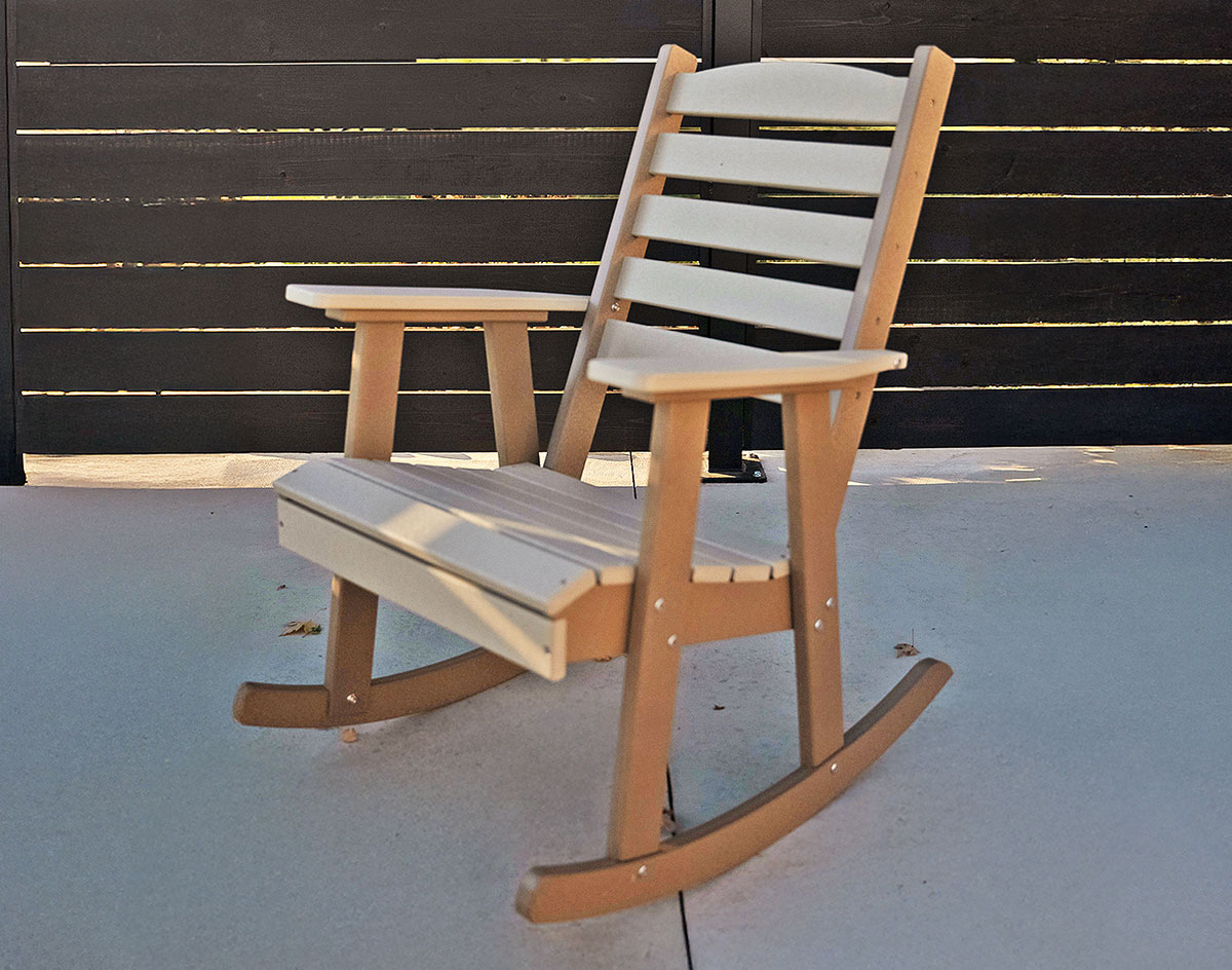Poly Lumber Bayside Slat Back Rocking Chair shown in Sand / Weatherwood