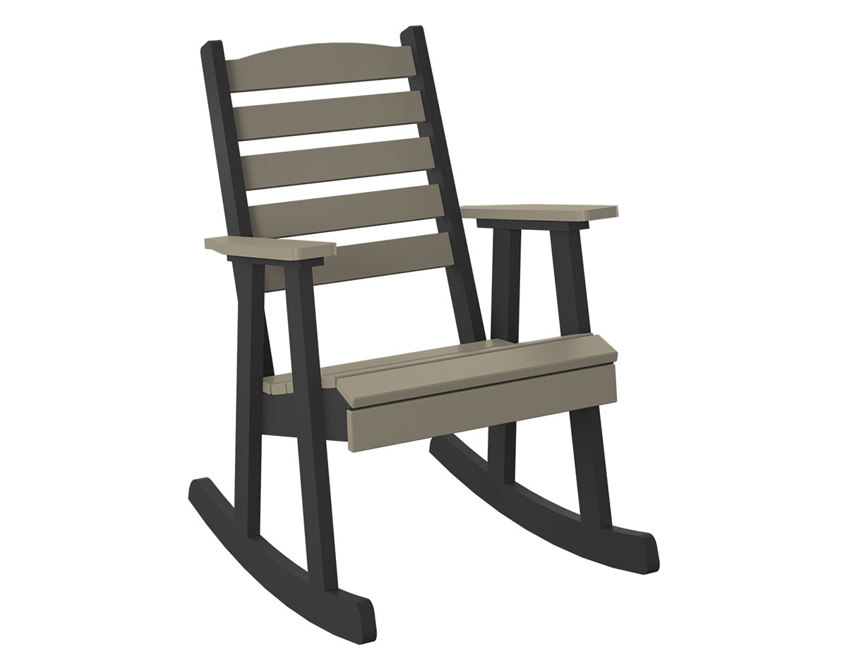 Poly Lumber Bayside Slat Back Rocking Chair shown in Weatherwood / Black