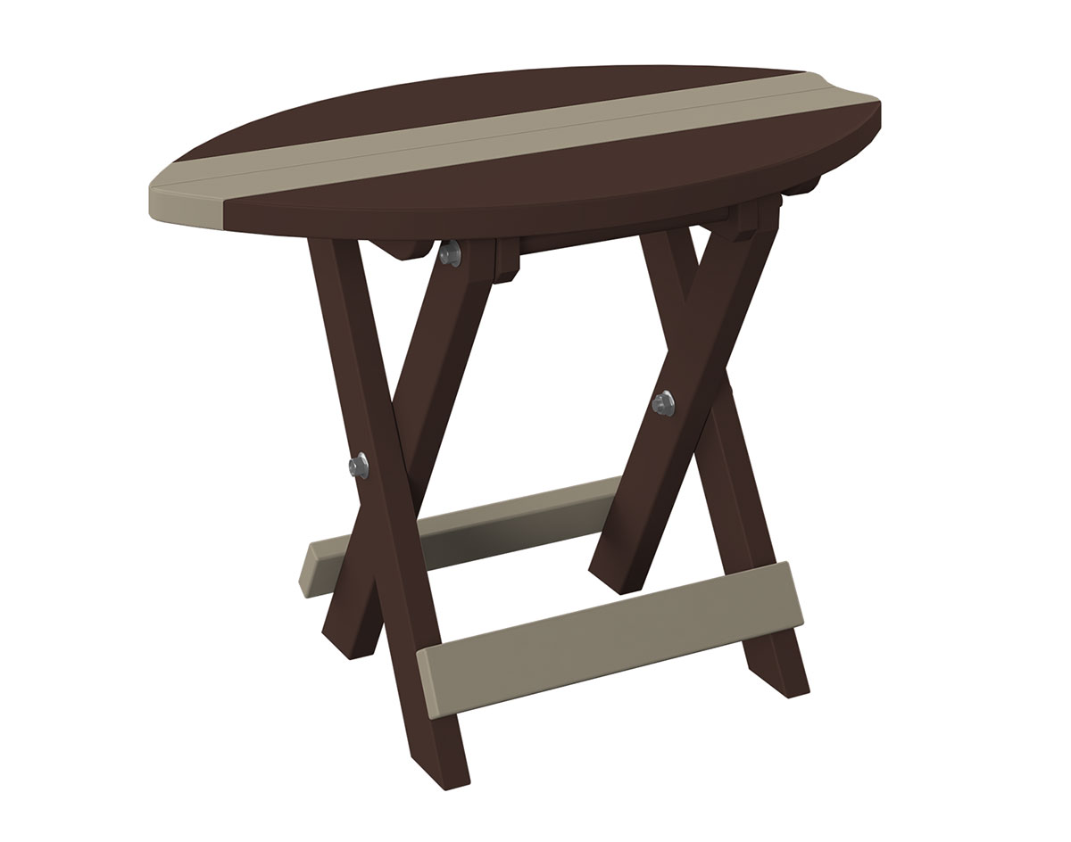 Poly Lumber Bayside Folding Surfboard End Table shown in Weatherwood / Tudor Brown