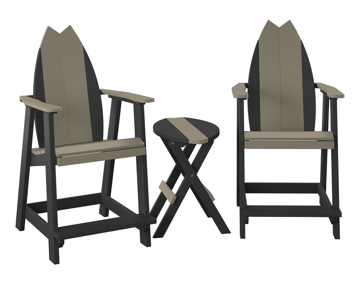 Poly Lumber Bayside Surfboard Balcony Set shown with 2 Tail Style Surf Chairs in Weatherwood / Black