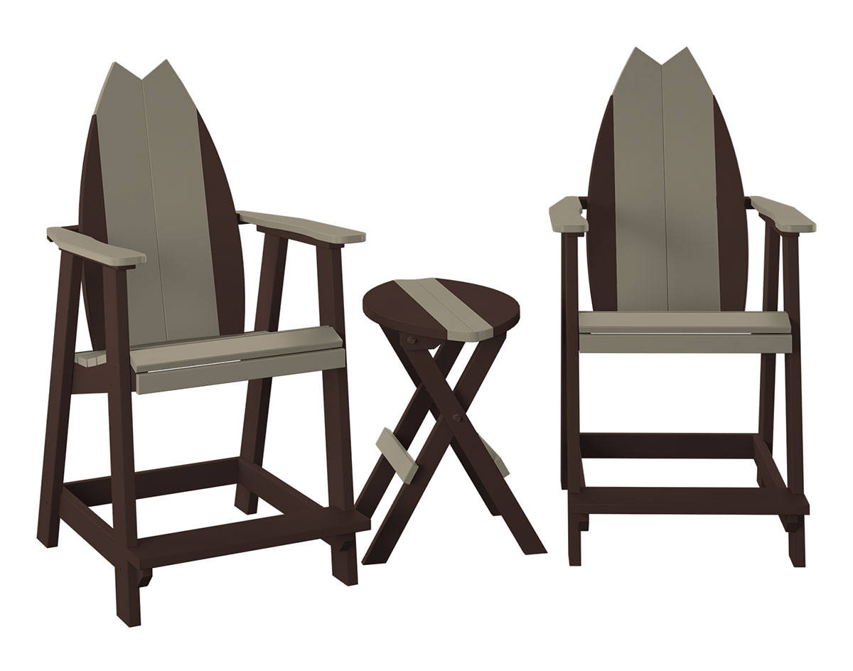 Poly Lumber Bayside Surfboard Balcony Set shown with 2 Tail Style Surf Chairs in Coffee