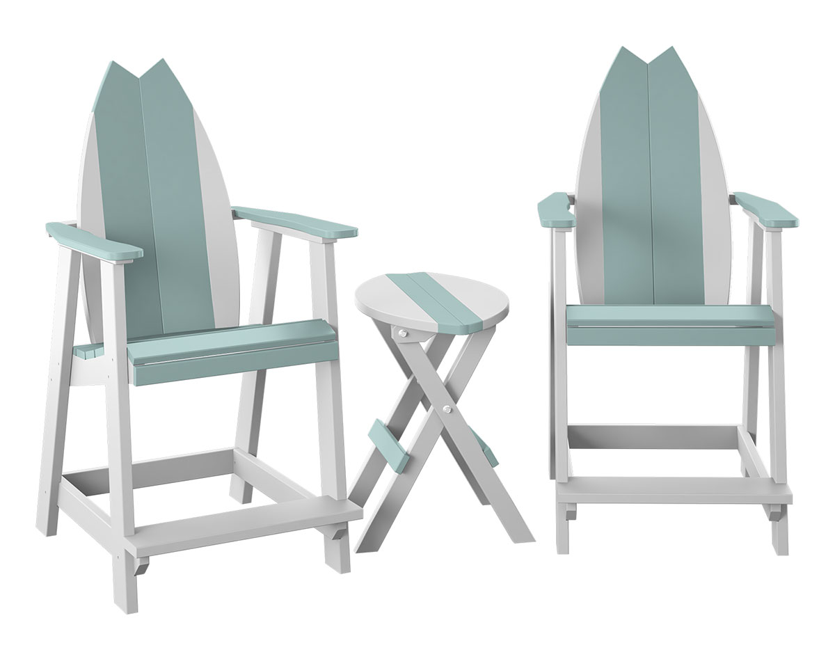 Poly Lumber Bayside Surfboard Balcony Set shown with 2 Tail Style Surf Chairs in Sage / White