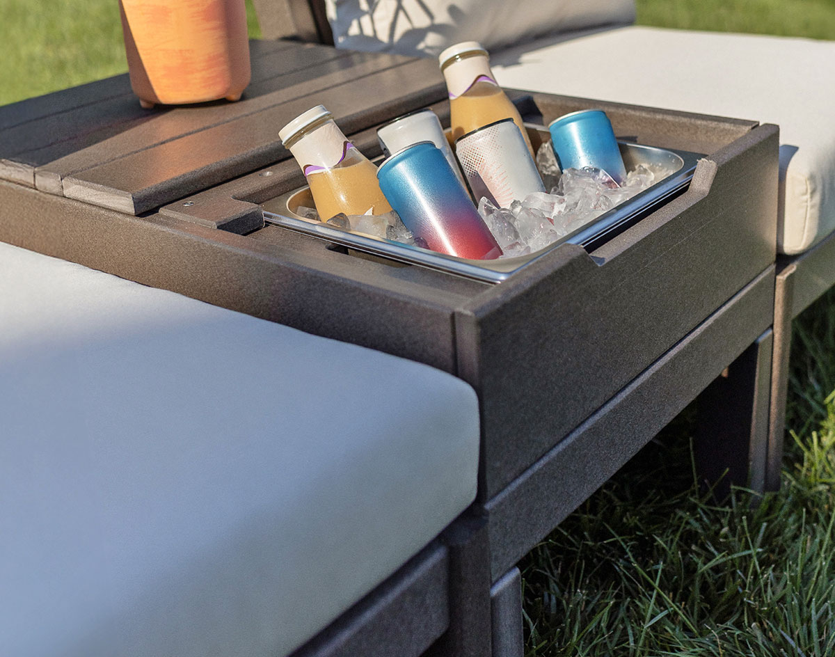 Poly Lumber Bayside Breeze Deep Seat Storage/Ice Table shown in Coffee with Poly Lumber Bayside Breeze Deep Seat Chairs (sold separately)