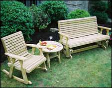 Set Includes 5' Glider, Rocker & Round End Table, Shown Unstained