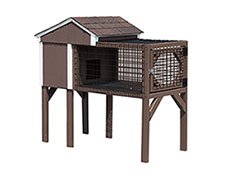 | SmartSide Single Rabbit Hutch shown in Charcoal Brown with White trim and Dark Brown shingles. |