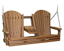 5' Poly Lumber Natural Finish Adirondack Swing shown in Antique Mahogany.