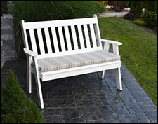 | 4' Poly Lumber Traditional English Garden Bench Shown in White With a Customer Provided Cushion. |
