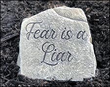 Concrete "Fear is a Liar" Religious Stone shown in Shale