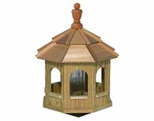 Greyfield Octagon Gazebo Birdfeeder shown with treated pine lumber and cedar shake roof.
