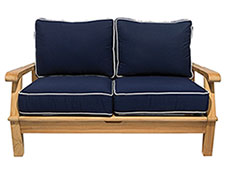 Teak Port Loveseat Shown with Blue Cushions w/ White Piping