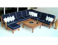 | Set Includes Sectional, Ottoman & Square Coffee Table, Shown with Blue Cushions w/ White Piping and Optional Pillows |