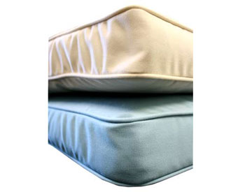 Boxed edges are made up of several pieces of fabrics. A top, bottom and side layer come together to form a boxed edge. Decorative piping gives this a crisp finished look.