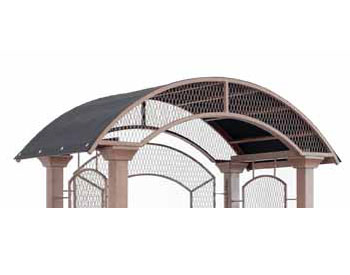 This Sunbrella Canvas Top is available in black only. It attaches with bolts on the four corners of the arbor. Care & Maintenance: Wash with warm water and a mild soap. Not recommended to be put into a high speed washer or dryer.