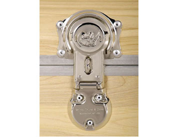 Stylish lockable nickel plated steel trunk lock. Also has a loop for attaching a padlock(not included)