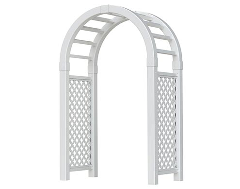 Enjoy exploring our many options in style, size, and structure. Flat top and arched garden arbors are equally durable for outdoor use, so keep in mind which shape will better suit the flow of your home’s architecture. Consider completing a wood arbor with a porch swing, benches, or gates. Another pleasant decision is whether to bring your arbor to life with wisteria, morning glories, or other floral displays, or to let the architectural beauty of the arbor itself steal the spotlight.