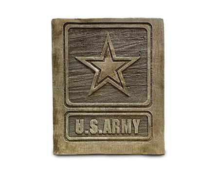 Celebrate your pride with this Concrete Army Patriotic Stone, featuring the iconic U.S. Army logo. Crafted from durable cast stone, it showcases a rustic live edge wooden finish, adding a touch of elegance to any space. Perfect for indoor or outdoor display, this piece is a testament to strength and honor. Ideal for veterans, military families, or anyone with a deep appreciation for the armed forces, this stone is a lasting tribute that enhances any decor.
